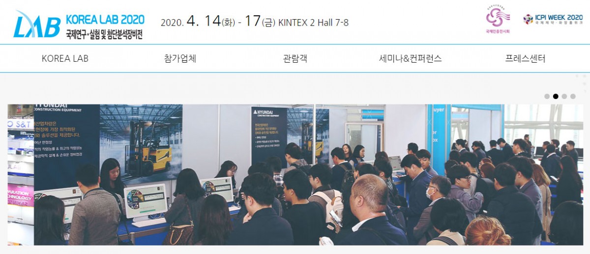 1. 귀 사의 무궁한 발전을 기원합니다. 2. 2020년 4월 14일(화)부터 17일(금)까지 4일간, KINTEX에서 개최 예정이었던 KOREA LAB 2020 이 2020년 7월 27일(월) ~ 30일(목)로 연기되었음을 알려드립니다.